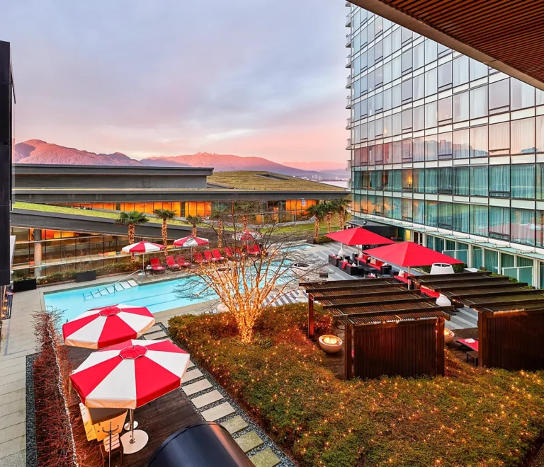 Located on the sixth floor, our palm-fringed outdoor pool provides a serene escape from the city below. Savour the views from comfortable loungers or take a refreshing dip. The pool deck is open daily from 6:00am-10:00pm for hotel guests and residents and our heated pool and Jacuzzi are open year round.